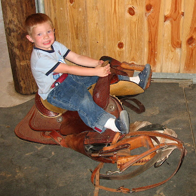 Here's Aaron sitting on the riding mower in the garage. Not that there is any grass up there yet.